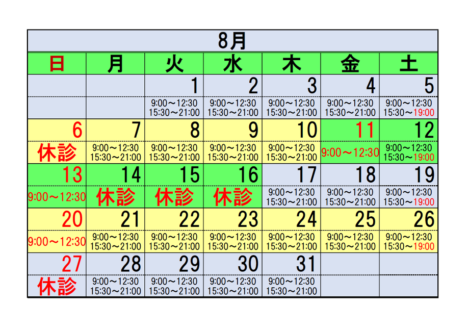 坂巻接骨院は日曜・祭日も診療している日があります。