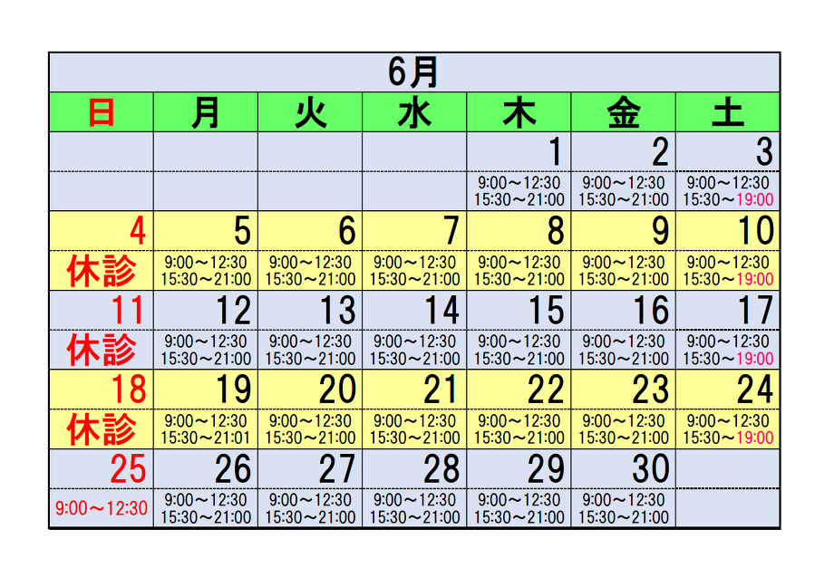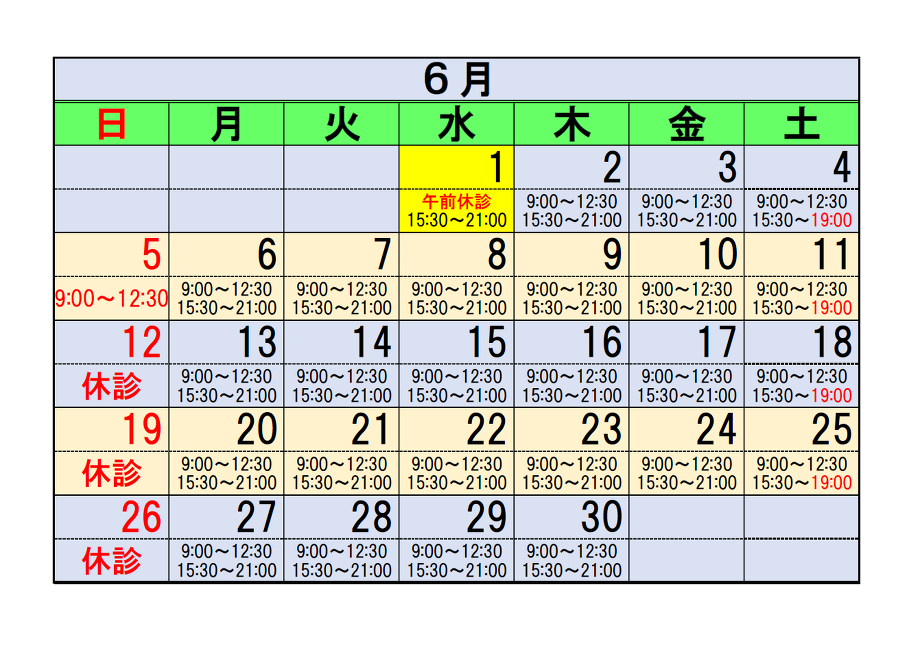 6月の予定を掲載いたします。