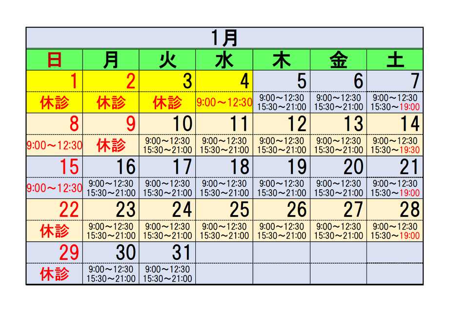 令和5年1月の予定を掲載致します。