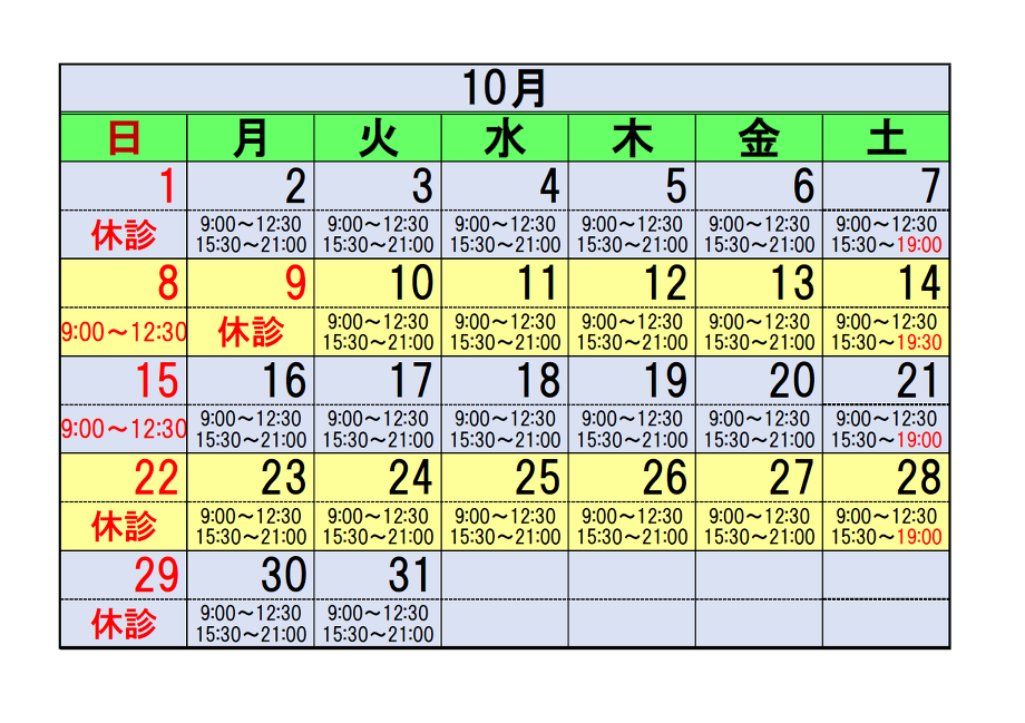 診療時間・休診の変更が多くありますので