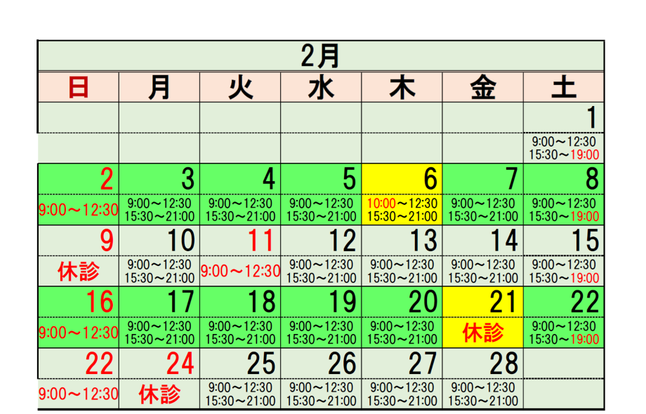 令和7年2月の診療予定を